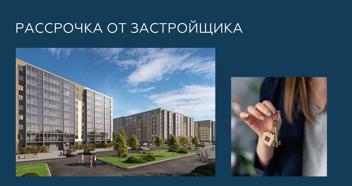 При оформлении рассрочки квартира приобретается на условиях оплаты частями, без уплаты процентов застройщику и без предоставления финансовой услуги какой-либо кредитной организацией. Также не нужно собирать справки и ждать одобрения банка, для оформления потребуются только личные документы.