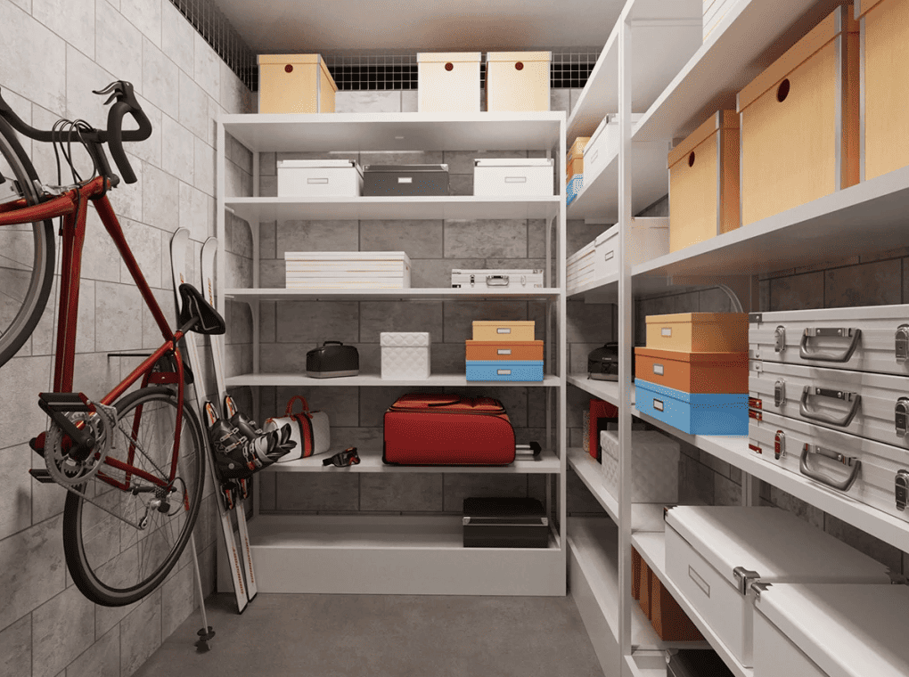 • Освещение светильник над каждой кладовой, снаружи у входной двери установлен выключатель